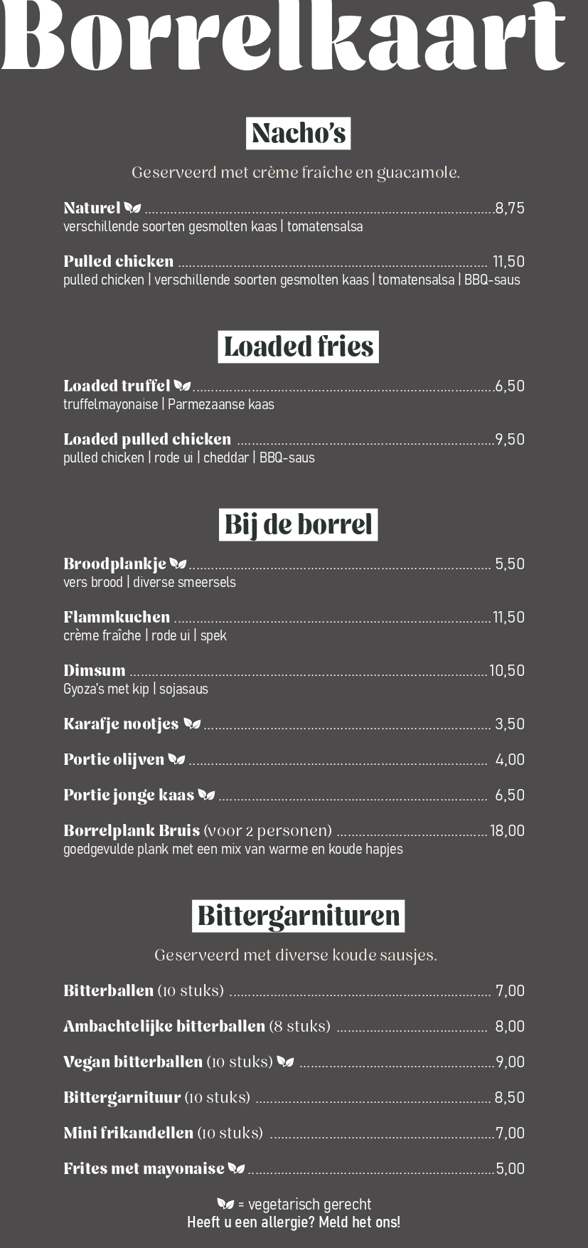 Borrelkaart (Met huisgemaakt gebak):